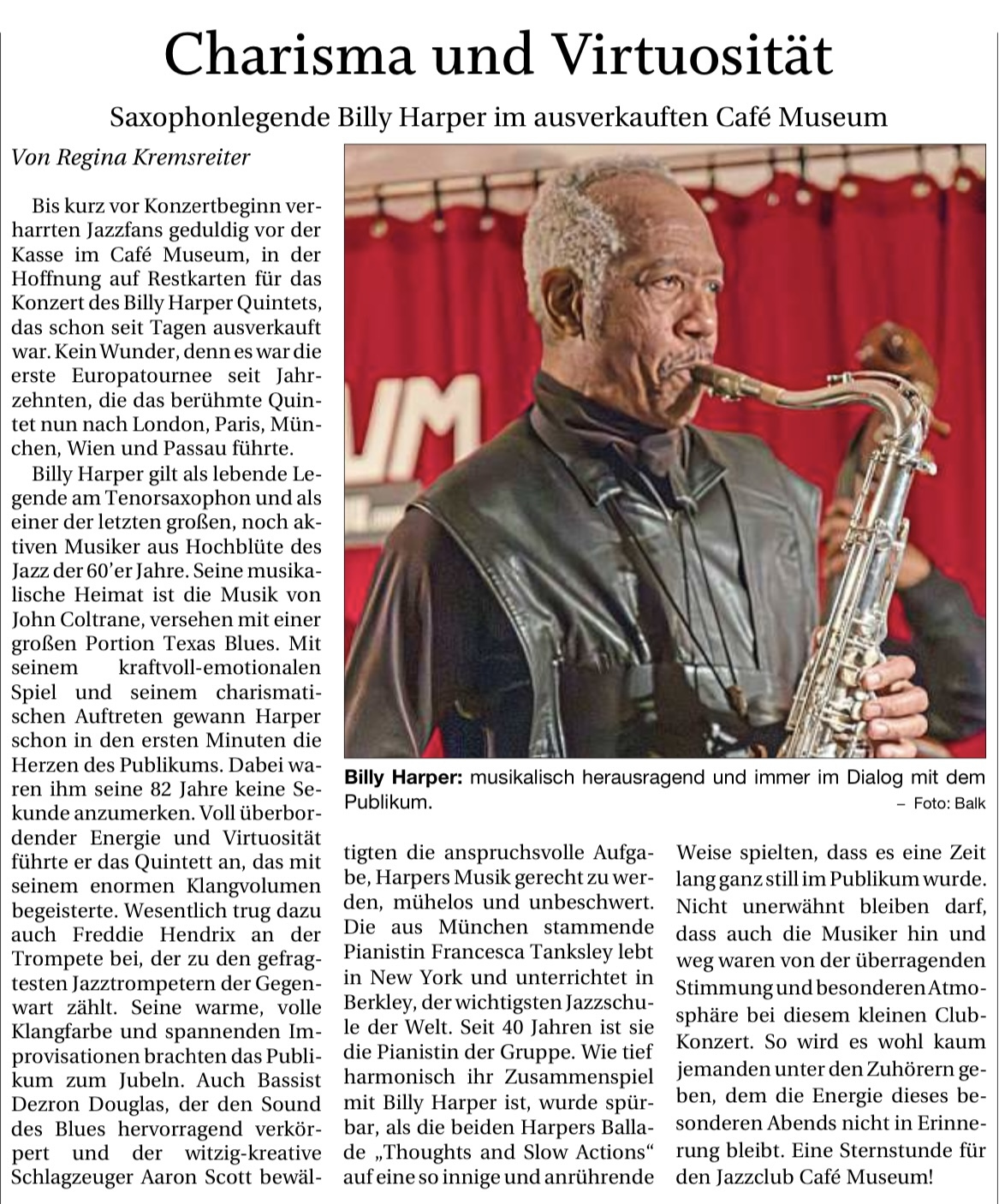 Until shortly before the concert began, jazz fans waited patiently in front of the box office in the café museum, hoping for remaining tickets for the billy harper quintet concert, which had been sold out for days. No wonder, because it was the first european tour in decades, which took the famous quintet to london, paris, munich, vienna and passau.