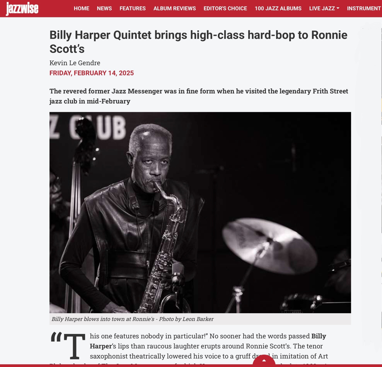 "This one features nobody in particular!” No sooner had the wordspassed Billy Harper’s lips than raucous laughter erupts around Ronnie Scott’s. The tenor saxophonist theatrically lowered his voice to a gruff drawl in imitation of Art Blakey, leader of The Jazz Messengers, of which Harper was a member in the late 1960s. A moment of levity it may be but the reference is hugely significant insofar as it underlines Harper’s role as a living link to one of the key architects of modern jazz.